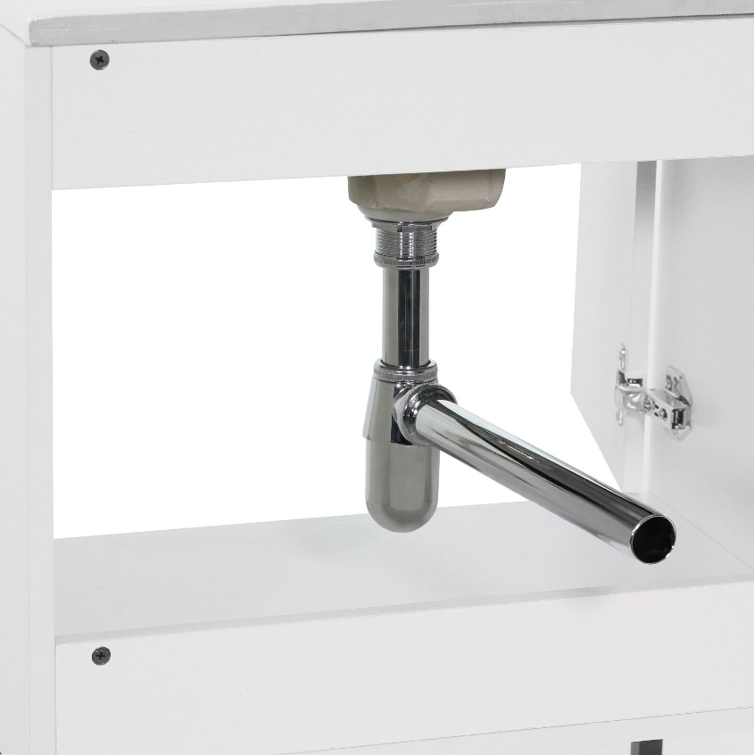 【Bathroom Vanity With Sink】: Easy clean and grand with the integrated sink made of premium ceramic, solid and durable. Features an overflow hole that prevents water leaks and spills. For your convenience, we have predrilled a single faucet hole. The faucet and drain are also included.