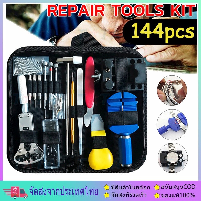 144pcs ชุดเครื่องมือซ่อมนาฬิกาอุปกรณ์ซ่อมนาฬิกาWatch Case Holder Opener Pin Link Remover Repair Tool Kit งมือซ่อมนาฬิก