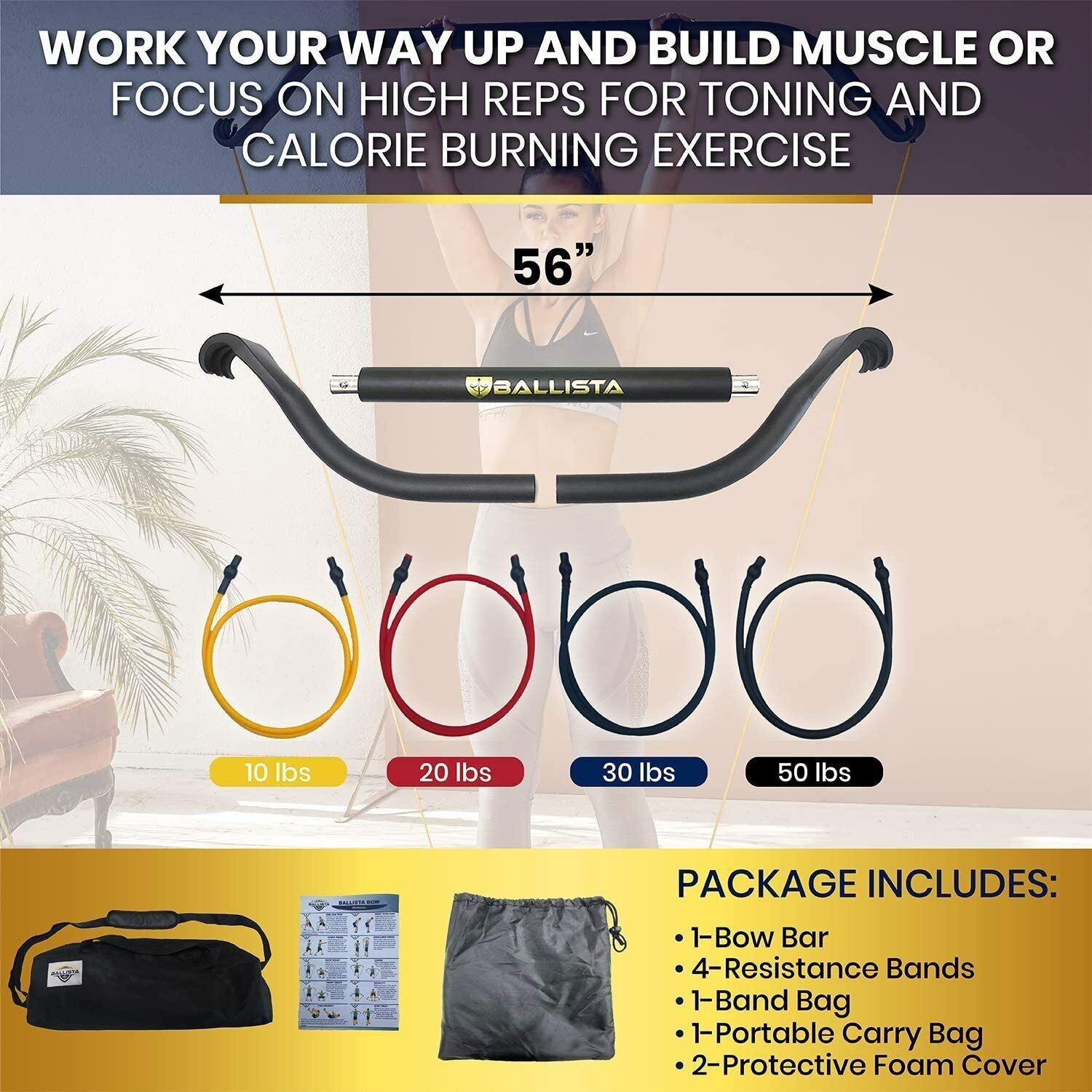 Ballista Bow: Workout Bow - Portable Home Gym Resistance Bands Fitness Equipment