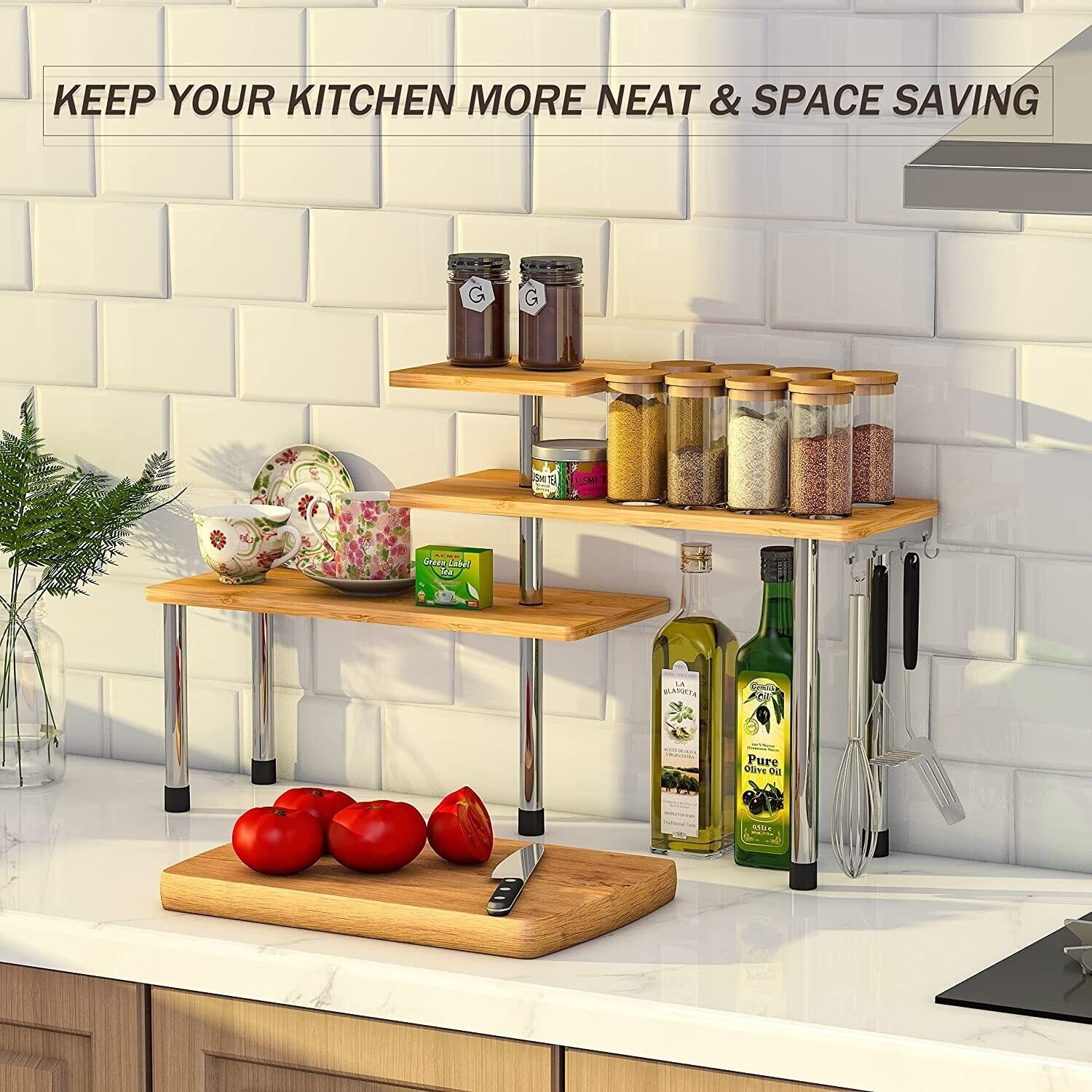 Kitchen Countertop Organizer Corner Shelf - 3 Tier Bathroom Storage Display Coun