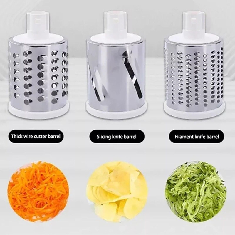 Equipped with three interchangeable cylindrical or rollers. Each one serves a different purpose like chopping, slicing, etc. It's available in three colors, red, green and blue, so you can it to your taste.
