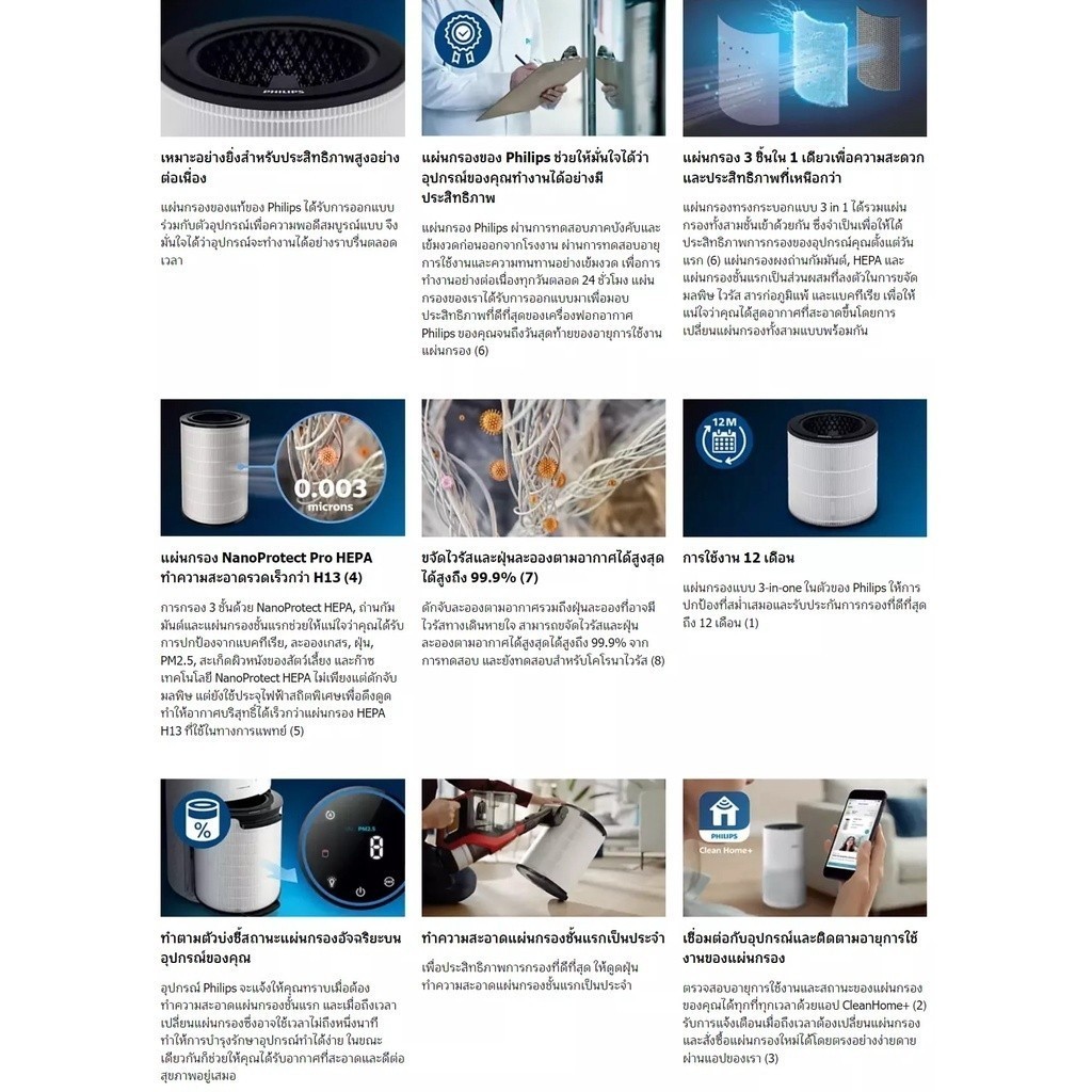 Philips NanoProtect 3 in 1 Filter 1000i FY1700/30 แผ่นกรองสำหรับเครื่องฟอกอากาศฟิลิปส์รุ่น AC1715