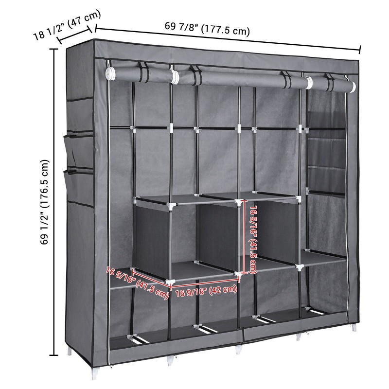 Portable Fabric Closet Wardrobe Roll-Up Door Clothes Rack Storage Organizer New