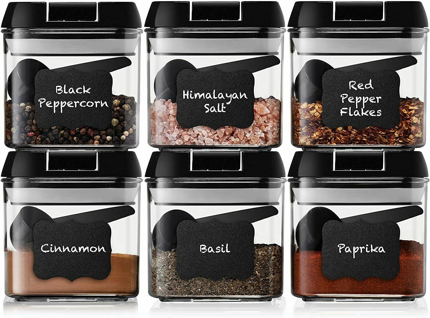 Set of 6 | Airtight Plastic Food Storage Containers | with Spoons and Labels