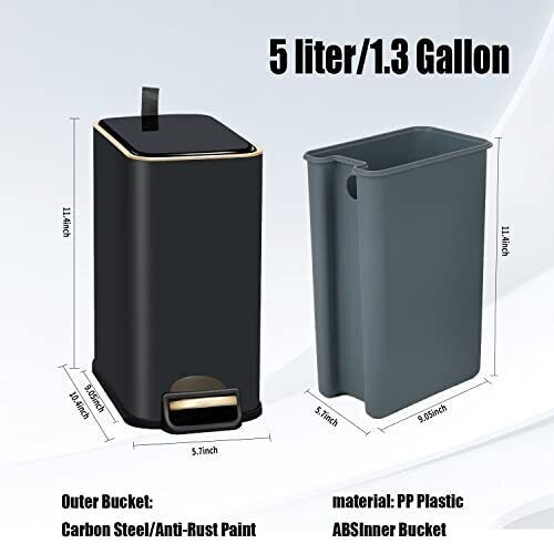 Small Bathroom Trash Can with Lid-5L/1.3 Gal Stainless Steel Step Pedal Trash...