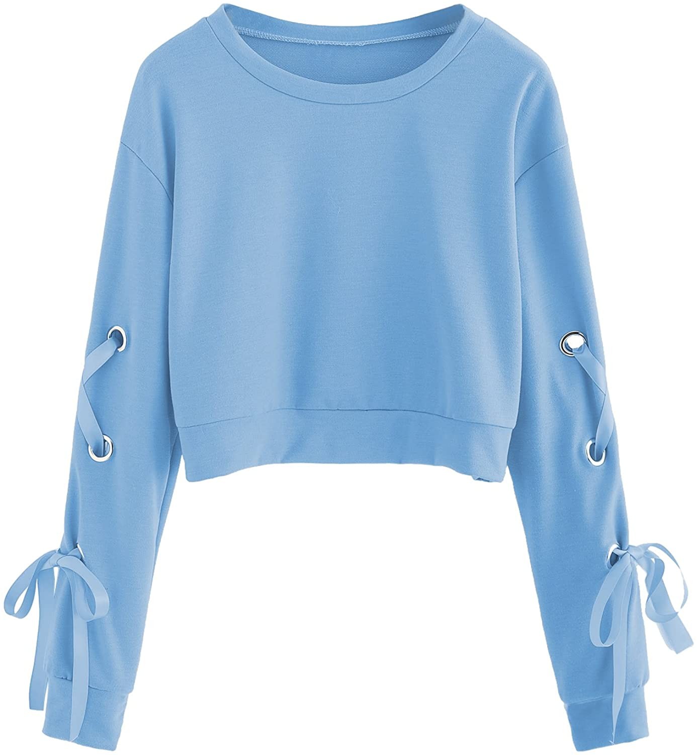 SweatyRocks Women's Casual Lace Up Long Sleeve Pullover Crop Top Sweatshirt
