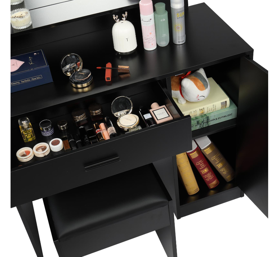 Vanity Set 10 Lighted Mirror Makeup Dressing Table W/ Dresser Cabinet for Women