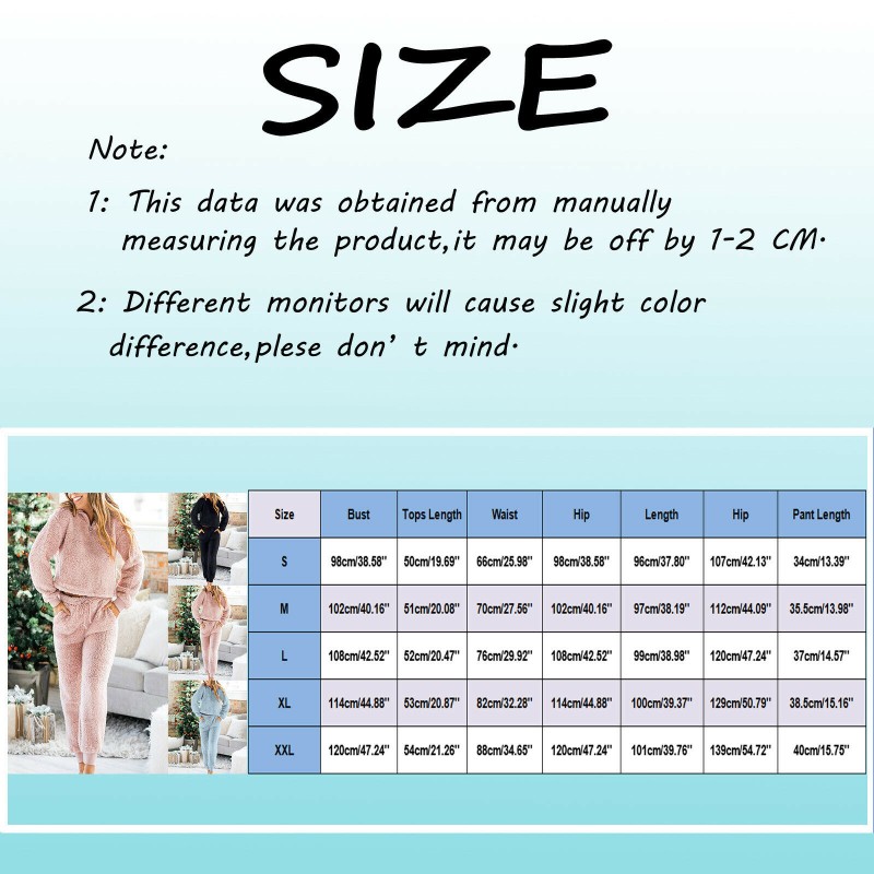 Women Pajamas Long Pants Teddy Bear Fleece Winter Soft Lounge Suit Sleepwear Set